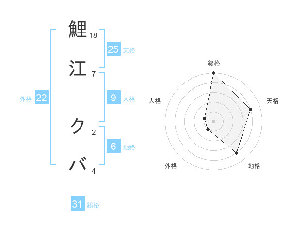 鯉江 クバさんの総格は31画の5点!