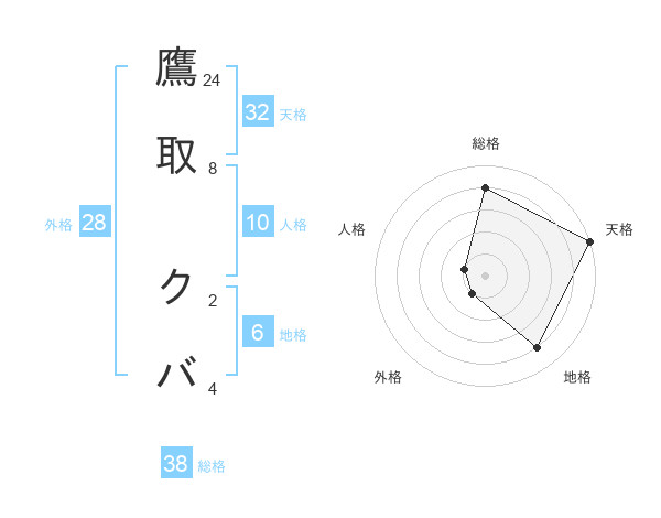 鷹取 クバさんを姓名の画数から五運を鑑定