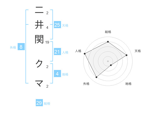 二井関 クマさんの総格は29画の4点!
