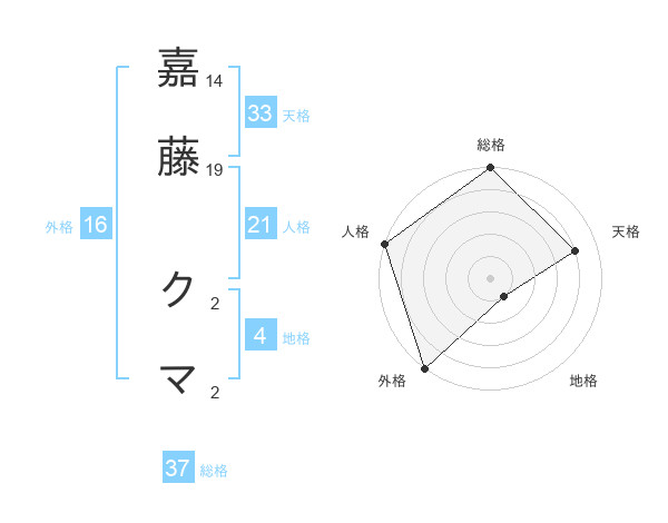 嘉藤 クマさんの総格は37画の5点!