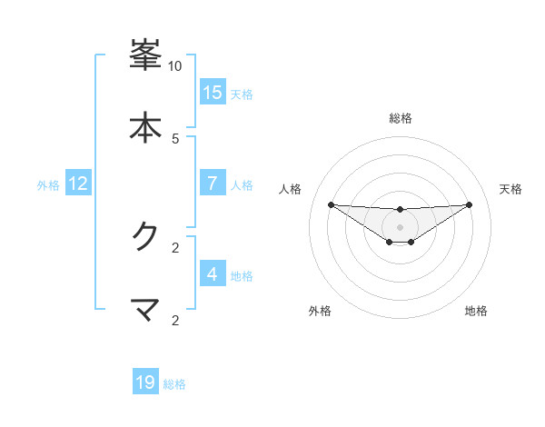 峯本 クマさんの総格は19画の1点!