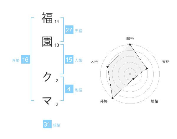福園 クマさんの総格は31画の5点!