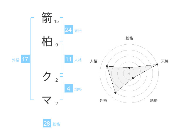 箭柏 クマさんの総格は28画の1点!