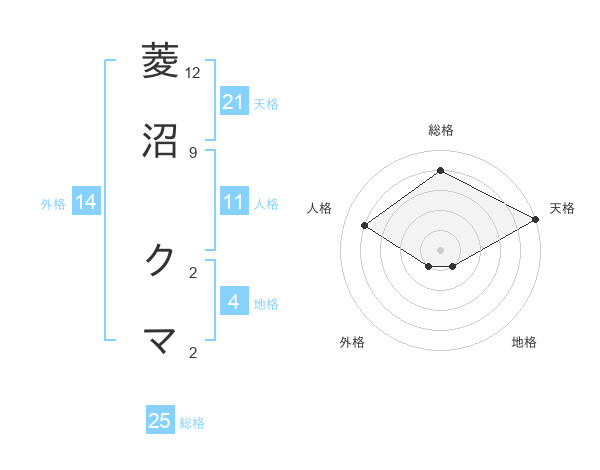 菱沼 クマさんを姓名の画数から五運を鑑定