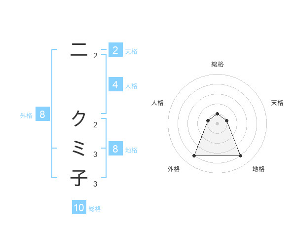 二 クミ子さんの外格は8画の4点!