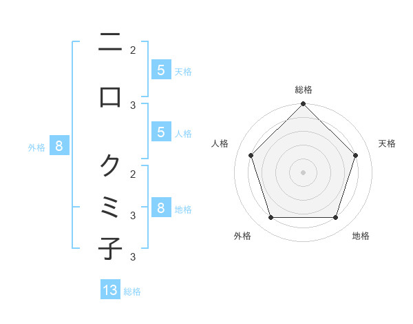 二口 クミ子さんの総格は13画の5点!