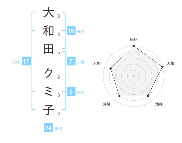 大和田 クミ子さんを姓名の画数から五運を鑑定
