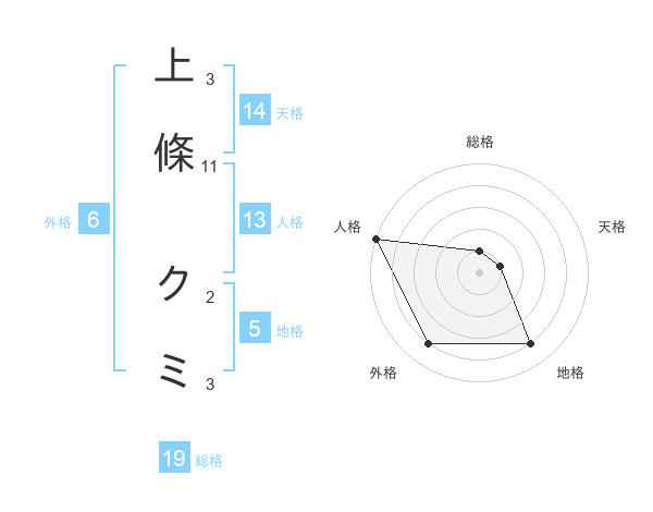 上條 クミさんの天格は14画の1点!