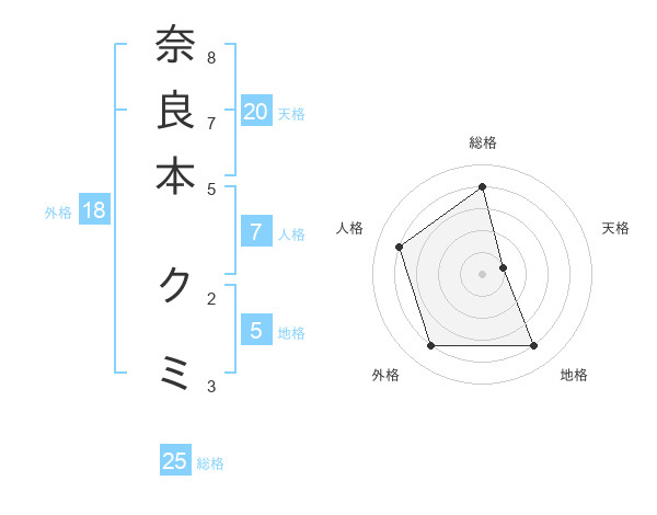 奈良本 クミさんを姓名の画数から五運を鑑定