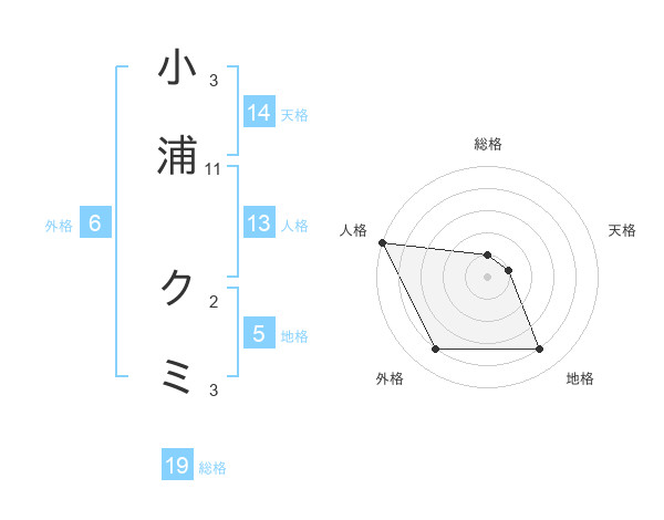 小浦 クミさんの地格は5画の4点!