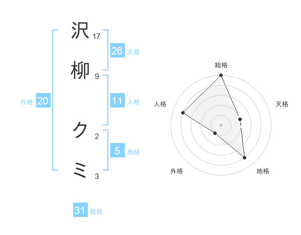 沢柳 クミさんの総格は31画の5点!