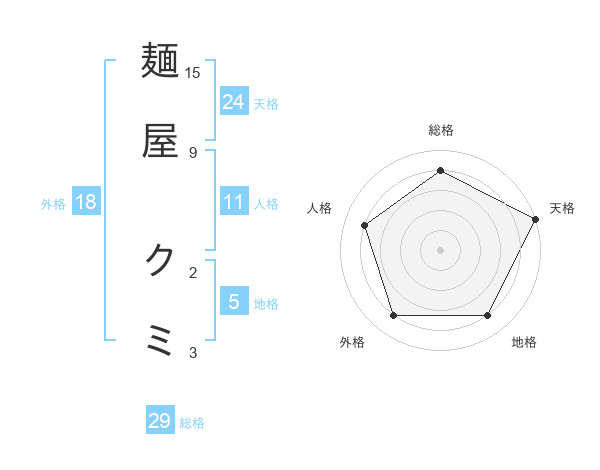麺屋 クミさんの総格は29画の4点!