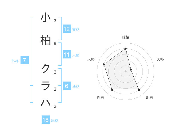 小柏 クラハさんの天格は12画の1点!