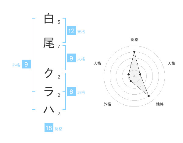 白尾 クラハさんを姓名の画数から五運を鑑定
