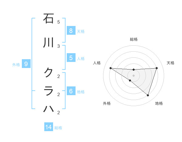 石川 クラハさんの総格は14画の1点