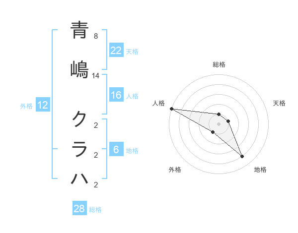 青嶋 クラハさんの天格は22画の1点!