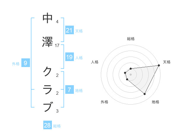 中澤 クラブさんの総格は28画の1点!