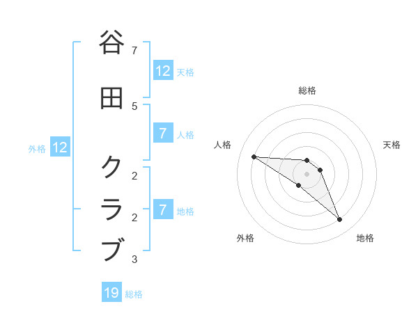 谷田 クラブさんを姓名の画数から五運を鑑定