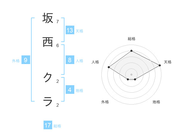 坂西 クラさんの総格は17画の4点!