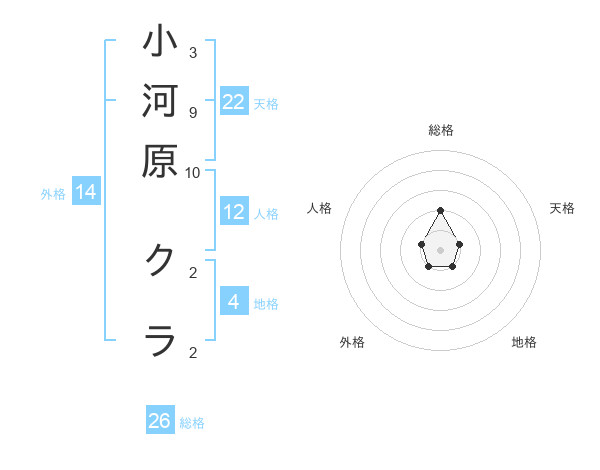 小河原 クラさんの総格は26画の2点!