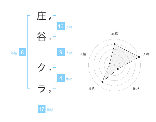 庄谷 クラさんの総格は17画の4点!