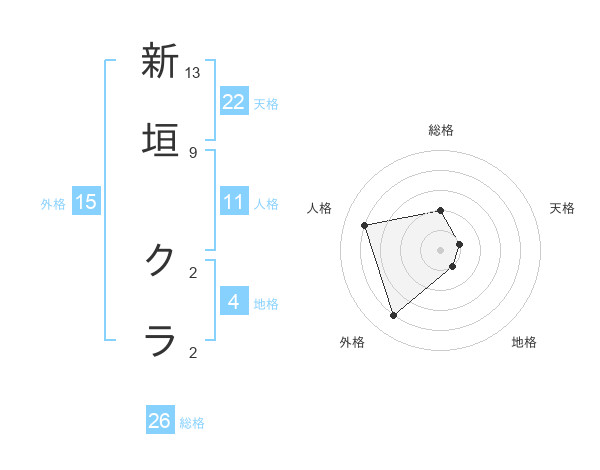 新垣 クラさんの外格は15画の4点!