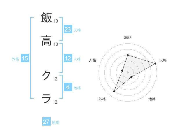 飯高 クラさんの天格は23画の5点!