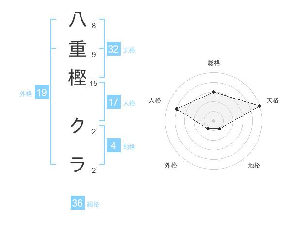 八重樫 クラさんの天格は32画の5点!