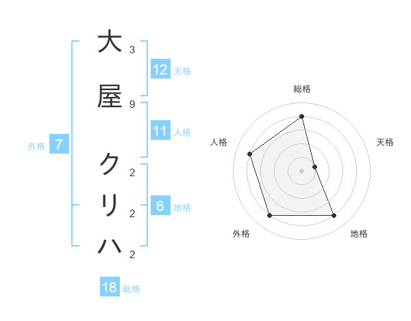 大屋 クリハさんを姓名の画数から五運を鑑定