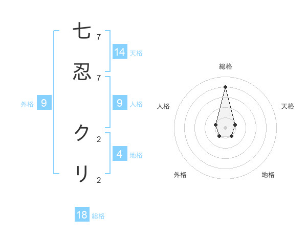 七忍 クリさんの総格は18画の4点!