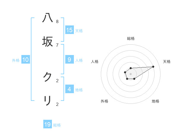 八坂 クリさんの天格は15画の4点!