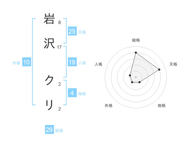 岩沢 クリさんを姓名の画数から五運を鑑定