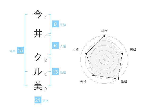 今井 クル美さんの外格は15画の4点!
