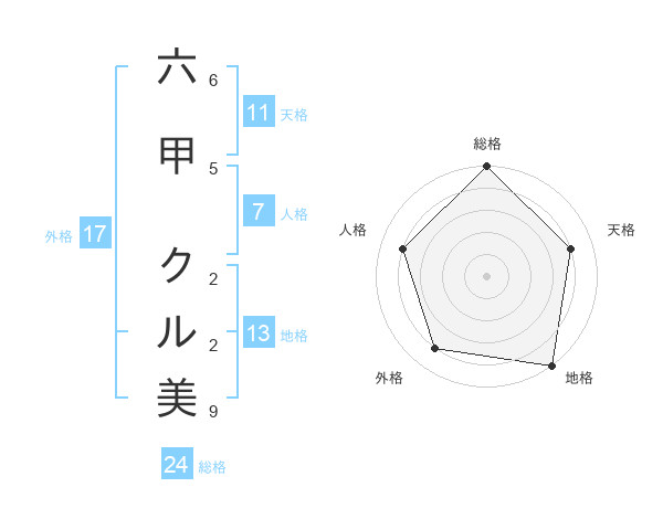六甲 クル美さんを姓名の画数から五運を鑑定