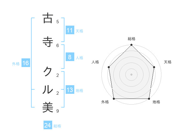 古寺 クル美さんの外格は16画の5点!