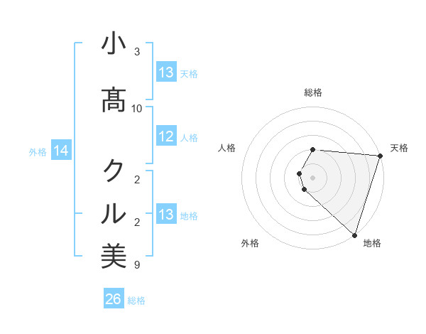 小髙 クル美さんを姓名の画数から五運を鑑定