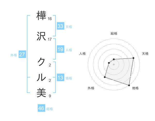 樺沢 クル美さんの地格は13画の5点!