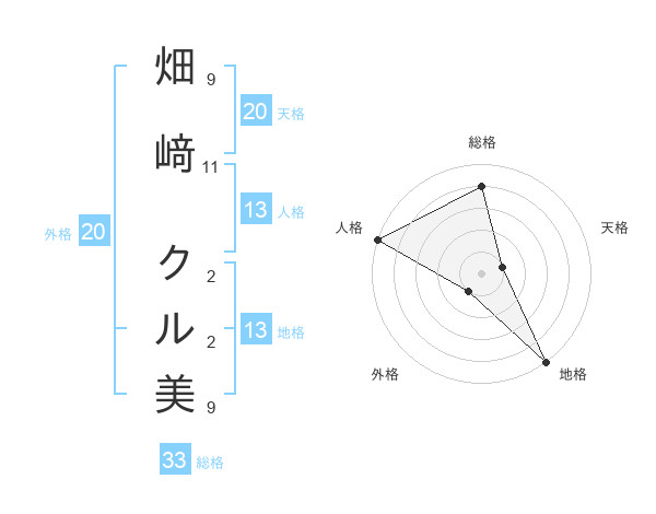 畑﨑 クル美さんを姓名の画数から五運を鑑定