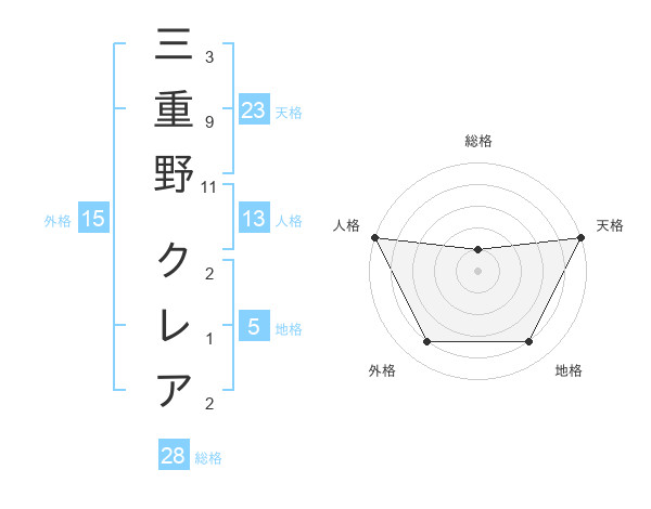 三重野 クレアさんを姓名の画数から五運を鑑定