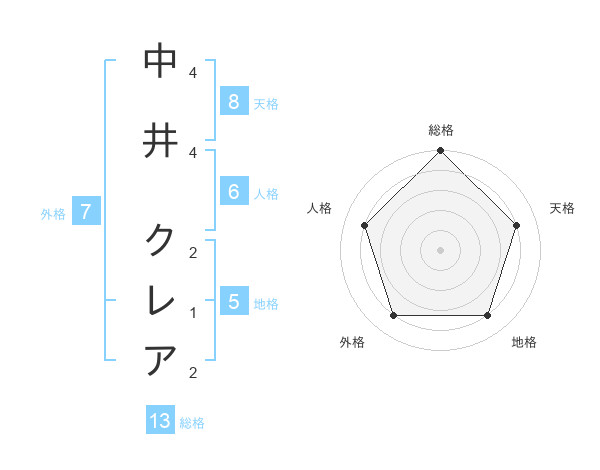 中井 クレアさんの総格は13画の5点!