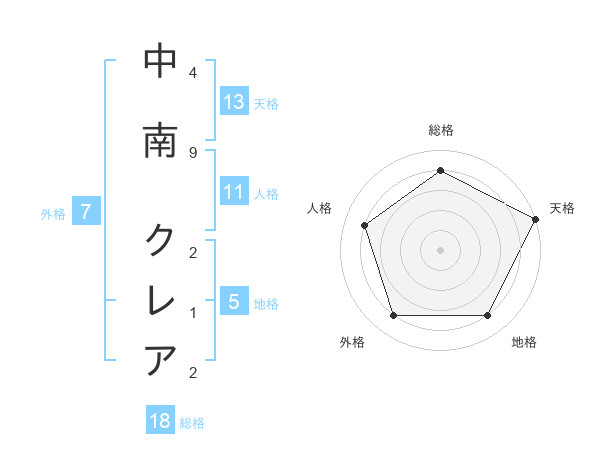 中南 クレアさんの天格は13画の5点