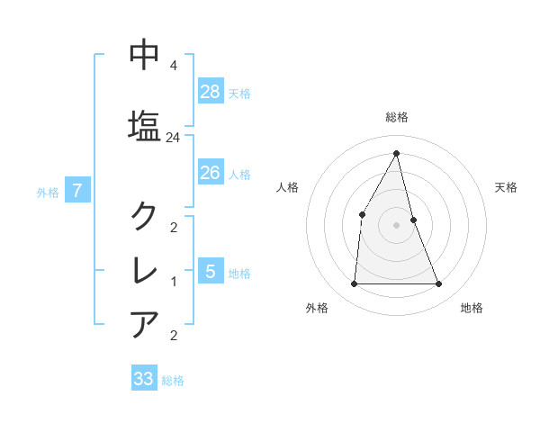 中塩 クレアさんの地格は5画の4点!