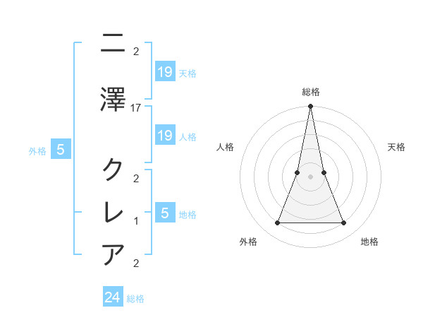 二澤 クレアさんの総格は24画の5点!