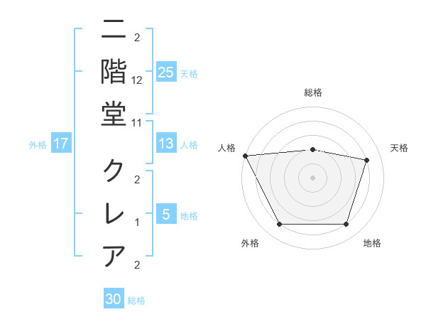 二階堂 クレアさんの天格は25画の4点!