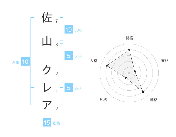 佐山 クレアさんの総格は15画の4点!