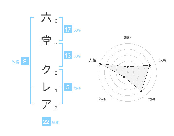 六堂 クレアさんの総格は22画の1点!