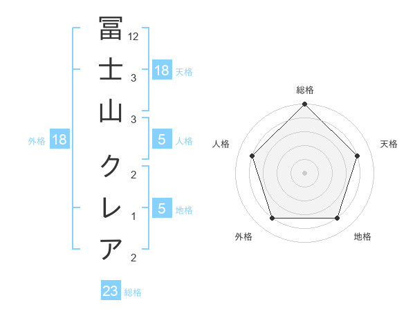 冨士山 クレアさんの総格は23画の5点!