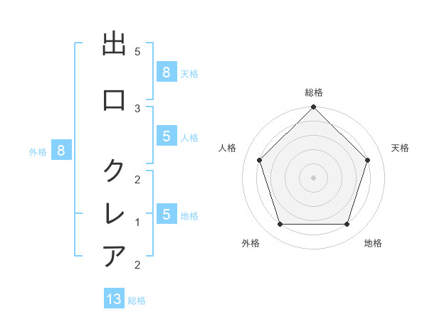 出口 クレアさんの総格は13画の5点!