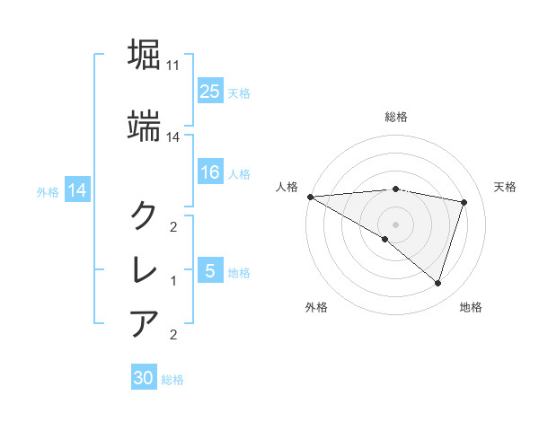 堀端 クレアさんを姓名の画数から五運を鑑定