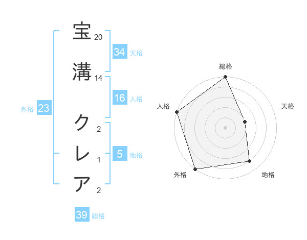 宝溝 クレアさんの外格は23画の5点!